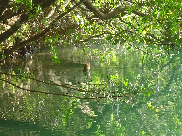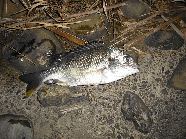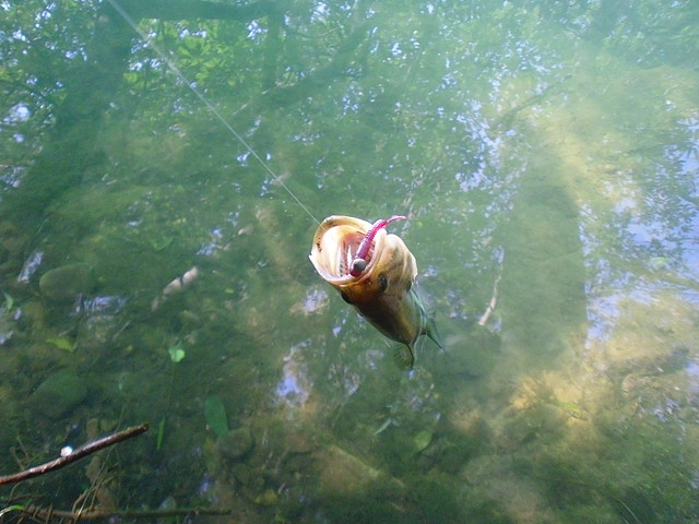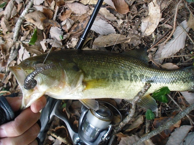 先日釣り上げた32センチのブラックバス 数日後に記録更新であります 場所は先日釣り上げた籾木池 しか~し、そう簡単にはいかなかったのである 籾木池に到着 あいかわらず草木の生い茂る中へ入って行き ブラックバスに気づかれないよう そーっと そーっと 降りて たまにズルッとスベって少しビックリして ブラックバスがいそうな場所へワームを投げ 底に着いたら チョン チョンチョン とアクションを加えながら 足元までリールを巻く 時には木の枝 さらには水中の何かに引っかかる 引っ張って外れることもあるが ラインが切れ ワームとオモリと針の一式を失うこともある こういった作業が釣れるまで繰り返されるのである ブラックバスやブルーギルが 物音にビックリすると逃げてしまう為 まるで忍者のような行動が必要なのである そうしてるうちに グッドなポイントへのワームの投入に成功 しかし幾重にも重なる木々の隙間をラインが通ってしまっている為 回収が困難な状況である そんな事は考えず とにかく1匹を釣る為 ワームにアクションを加え続ける 突然ラインが何者かに引っ張られる すかさずロッドをたてて合わせる グンッグンッ 何者かが逃げるようにラインを引っ張る その内水面からバシャッと 奴はあらわれた あっ、ブラックバスだ フィーーーッシュ(心の声) リールを巻くがすぐに止まってしまう そう、木の枝にラインが引っかかり これ以上リールが巻けないのだ ラインが細いので強引に引っ張ると切れてしまう せっかくヒットしたのにそれは酷だ ブラックバスはプラーんとぶら下がった状態でもがいている どうする? ラインが張った状態でロッドを木の枝を利用して固定し ブラックバスがぶら下がっている木へ近づく 木は陸から水上に張り出している為、距離があり ラインに手が届かない 覚悟を決め 木に登る 落ちれば地上ではなく水の中 少しドキドキしながら さらに近づく それでもラインに手が届かない 近くに落ちていた木の枝を使い ラインをたぐりよせる ブラックバスはだいぶ疲れているようだ ようやく手でラインをつかみ ブラックバスを地上にあげる事に成功 かなりの体力と神経を消耗 ブラックバスはけっこうデカイぞ サイズは約36センチ お~、記録更新 1匹釣り上げるのに こんなに時間と体力と神経を消費するとは 釣りと言うよりサバイバル ものすごくうれしいのだが ロッドの役割を木の枝がやってくれていた為 このブラックバスの引きを堪能できなかったのが 少し残念 おまけ 先日と今回ブラックバスを釣った際のタックル紹介 <ロッド> 4g~14gのルアーを投げられるスピニングロッド ダイワの古いロッドで似たようなロッドは最近なかなか見ないです 2000円位で売ってるものに近い物がありますが それよりは優秀でロッド全体がキレイに曲がってくれるので 大物でもポキッと折れることはありません ワームよりミノーの方がこのロッドには向いている気がします <リール> ダイワ(Daiwa) レブロスMX 2000 磯釣りで使用していたのですが、最近はルアー用として使っています 何の不服もございません <ライン> フロロカーボン、太さは4か5か6ポンドです ラインの太さやメーカーは記憶にございません ワームはミミズみたいで尻尾がヒラヒラしたロングカーリーテイルっていうのかな 灰色と赤色を使いました もらい物なのでどこのメーカーか分かりません 5gのシンカーを使ったテキサスリグです 以上、参考程度に |